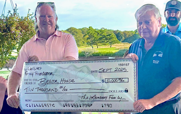 Ralph Lambert, President & CEO of Axis Construction, proudly presented a $10,000 check from the Lambert Family Foundation to United Veterans Beacon House in support of housing and essential services for homeless veterans on Long Island.
