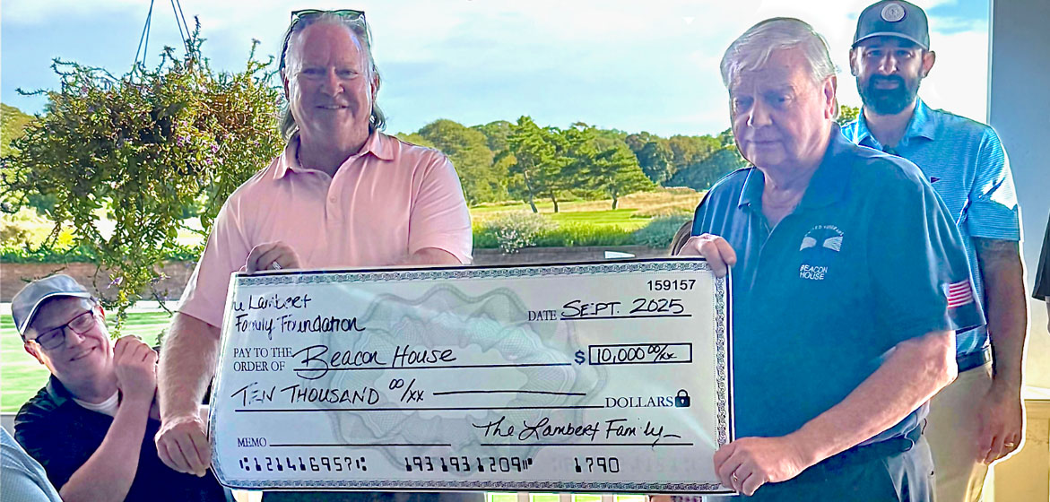 Hauppauge, NY – September 30, 2025 – Pictured above, Ralph Lambert, President & CEO of Axis Construction, presents a $10,000 check on behalf of The Lambert Family Foundation to Frank Amalfitano, President/CEO of United Veterans Beacon House (UVBH).